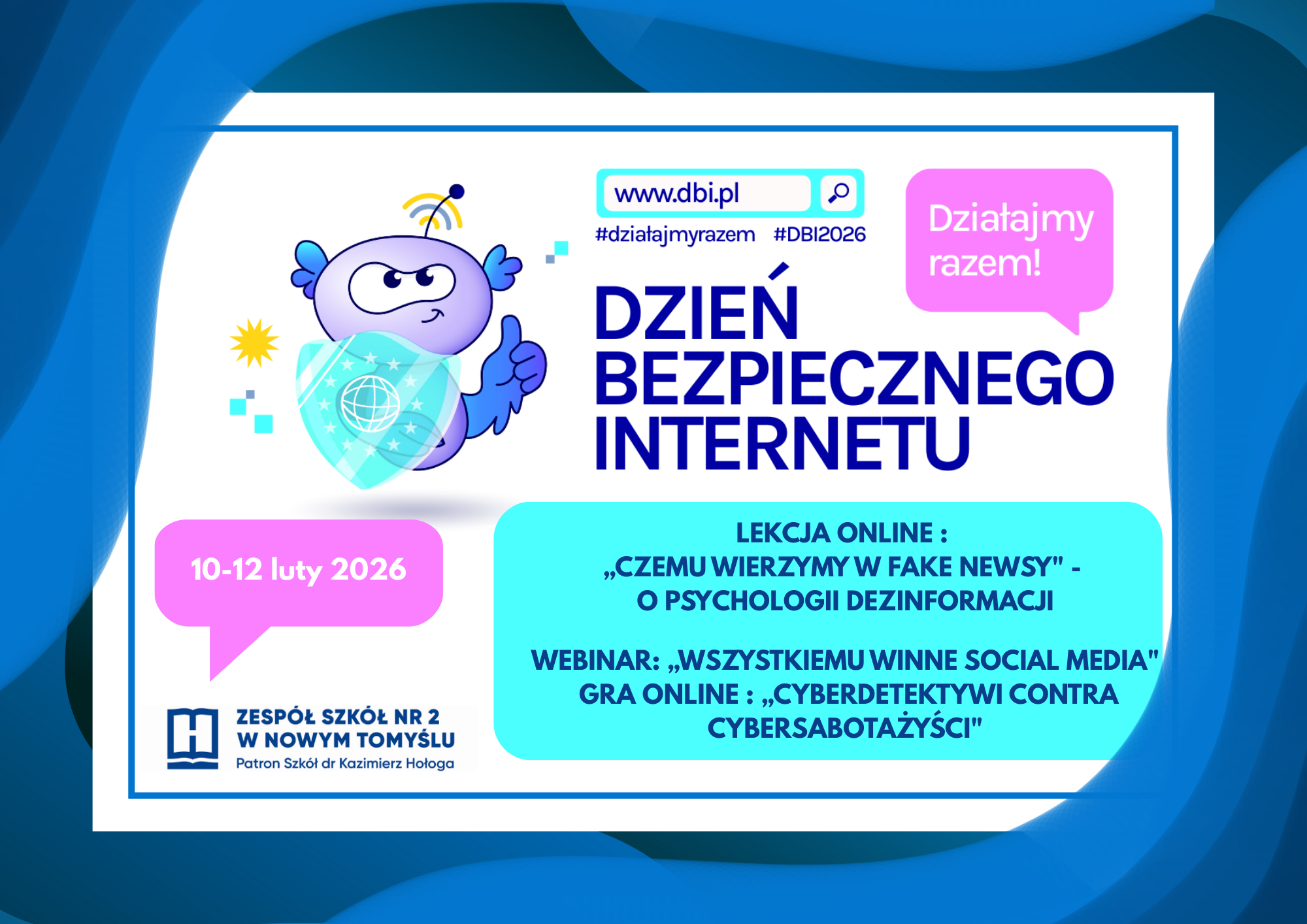 Dziękujemy wszystkim uczniom i nauczycielom za aktywny udział w wydarzeniach DBI 2026. Razem budujemy bezpieczniejszy Internet!
