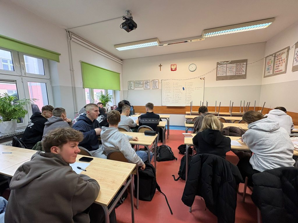 W dniu 5.12.2025 roku odbyło się spotkanie informacyjne skierowane do uczniów zakwalifikowanych do udziału w przedsięwzięciu oraz do uczniów znajdujących się na listach rezerwowych. Uczniowie zostali poinformowani o najważniejszych aspektach udziału w przedsięwzięciu „CZAS NA STAŻ!” 2024-1-PL01-KA122-VET-000216716 realizowanego w ramach Programu Fundusze Społeczne dla Rozwoju Społecznego 2021-2027 współfinansowanego z Europejskiego Funduszu Społecznego Plus w ramach KA1“Kształcenie i szkolenia zawodowe”.