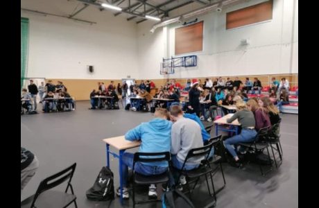 19 grudnia w naszej szkole odbyły się potyczki językowe z języka angielskiego oraz niemieckiego o tematyce świątecznej. W wydarzeniu wzięło udział, aż 14 drużyn! Każda drużyna składała się z 4 osób. Potyczki składały się z 3 etapów. Po dwóch etapach odpadło 10 drużyn. W ostatnim, trzecim etapie zawodnicy walczyli bardzo zacięcie, ale wygrali najlepsi zdobywając oszałamiającą ilość punktów, a jest to klasa 4 TL! Drugie miejsce zajęli uczniowie z 4 TM TOR. Trzecie miejsce należy do 1 PTR, natomiast czwarte do 1 GTR. Oczywiście gratulujemy wszystkim uczestnikom i pierwszakom, którzy dumnie walczyli i zajeli miejsca w czołówce. Pragniemy również wspomnieć, że naszymi sponsorami byli Pub & Restauracja Pin up oraz restauracja Ramzes.