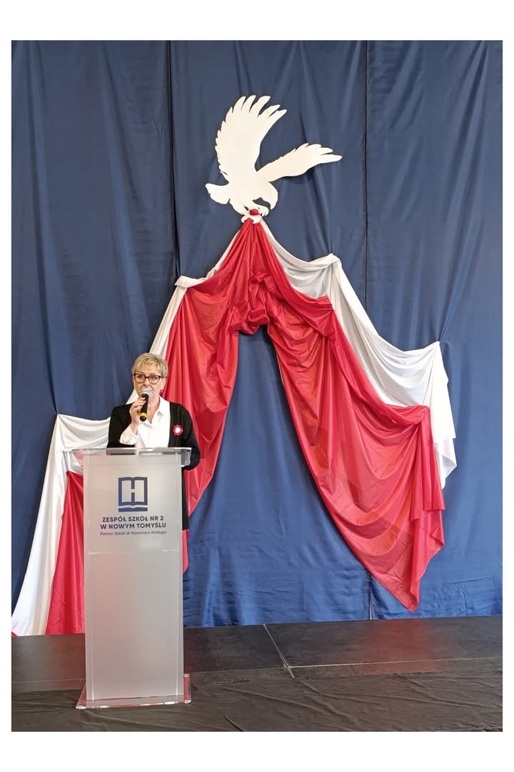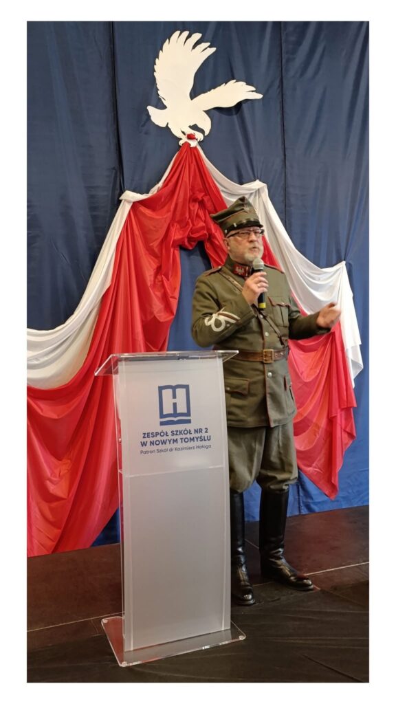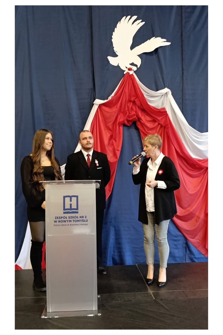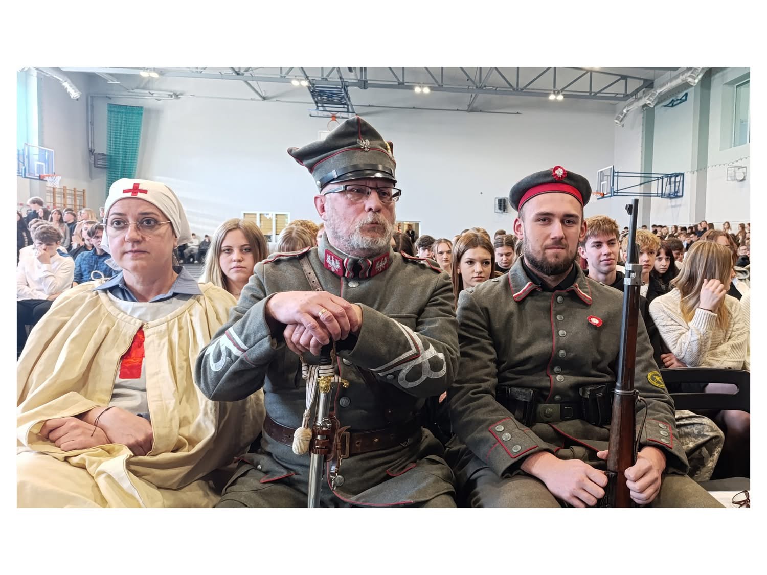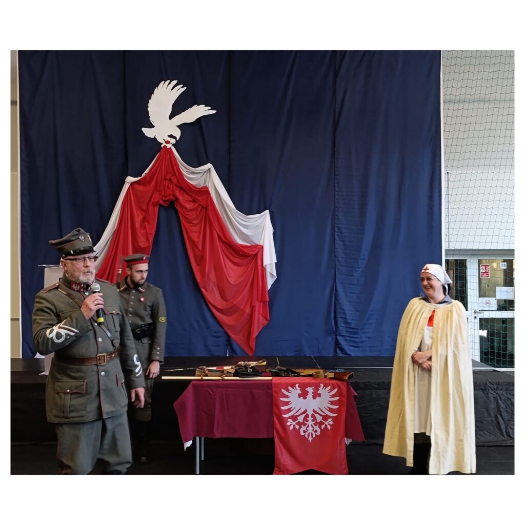 W przeprowadzonej niedawno ankiecie zapytano Polaków, jakie zachowania uważają za przejawy postawy patriotycznej. Jako jedno z najważniejszych uznano obchodzenie świąt narodowych. Społeczność naszej szkoły od lat, niezwykle uroczyście, celebruje kolejne rocznice odzyskania niepodległości. Święta będącego symbolem odwagi, nadziei i niezłomności wielu pokoleń naszych rodaków. W piątek 7 listopada br. spotkaliśmy się wszyscy w hali sportowej. Nad sceną górowała dekoracja – orzeł unoszący w górę polską flagę. Po wystąpieniu dyrektor Marzeny Ginter, podobnie jak w innych szkołach w Polsce, odśpiewaliśmy wspólnie wszystkie zwrotki Mazurka Dąbrowskiego. Następnie wystąpiła grupa uczniów, którzy przypomnieli historię odzyskania przez Polskę wolności. W tej opowieści nie brakowało utworów poetyckich i pieśni, które były duchową bronią Polaków, źródłem nadziei na odzyskanie wolności. W drugiej części akademii odbyło się spotkanie z gośćmi honorowymi – Panem Maciejem Myczką, pasjonatem historii, działaczem społecznym, rekonstruktorem, opiekunem miejsc pamięci i propagatorem wiedzy na temat powstania wielkopolskiego oraz Panią Rozalią Kaczmarek wice prezes Stowarzyszenia Miłośników Historii Wojskowości przy Lubuskim Muzeum Wojskowym w Zielonej Górze. Pan Myczka, ubrany w replikę munduru gen. Józefa Dowbora-Muśnickiego, opowiedział o ciekawych, niekiedy mało znanych, wydarzeniach z powstania wielkopolskiego. Zaprezentował autentyczny mundur powstańczy, który założył jeden z uczniów klasy V i broń. Pani Rozalia Kaczmarek, ubrana w strój sanitariuszki, opowiedziała o pracy służb sanitarnych podczas powstania. Zaprezentowała oryginalny sprzęt medyczny oraz sierściucha, czyli plecak sanitariusza wykonany z końskiej skóry. Na zakończenie odbyło się wręczenie nagród laureatom szkolnego „Konkursu savoir- vivre”.